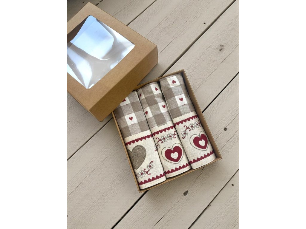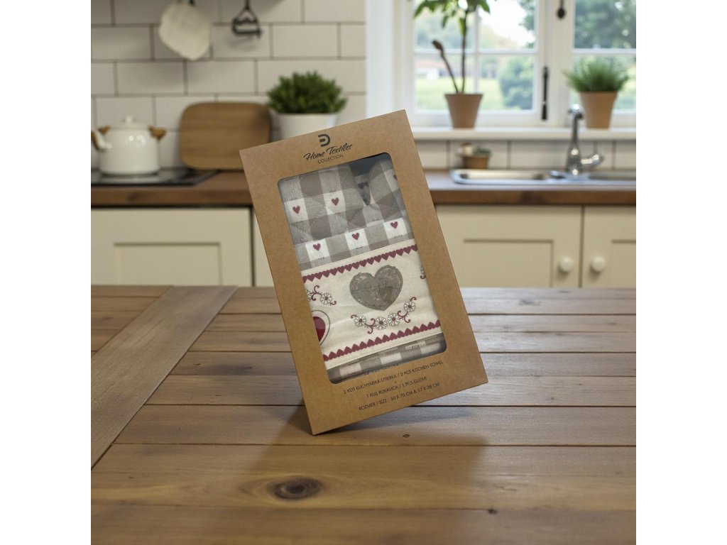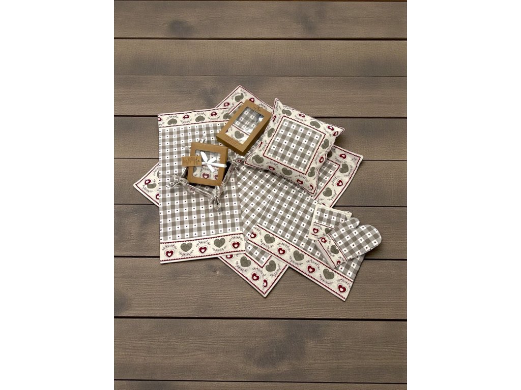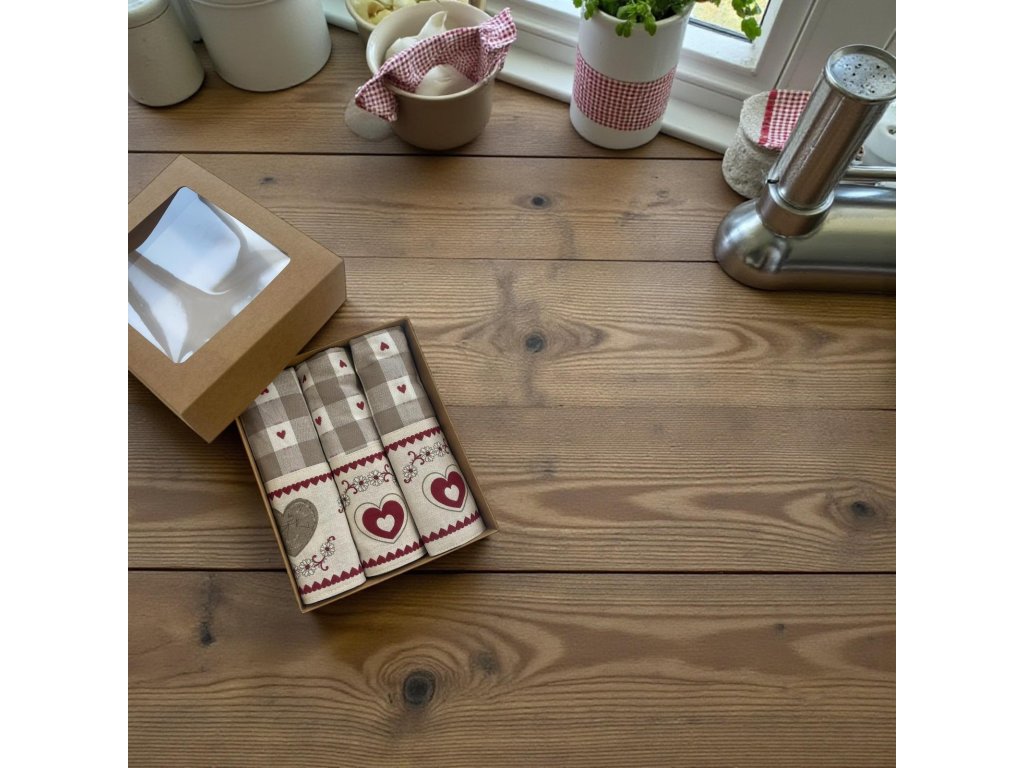 ❤️ Kuchynská a stolová kolekcia – vidiecky motív so srdiečkami