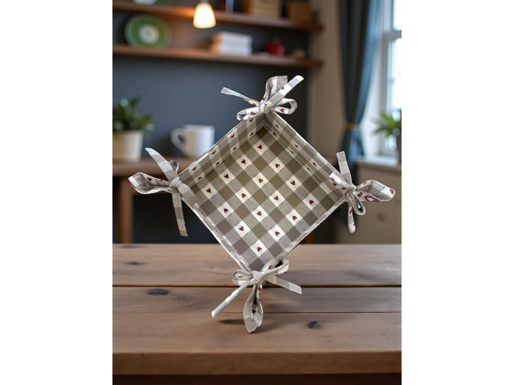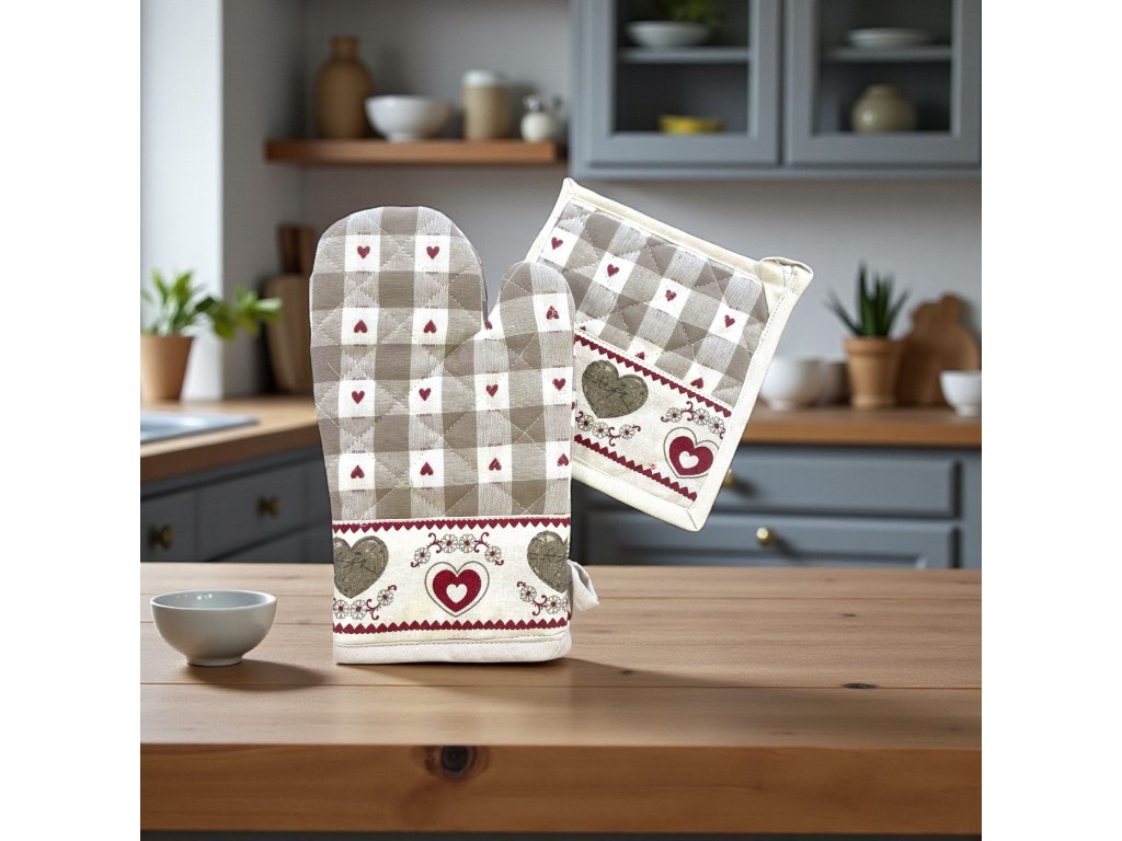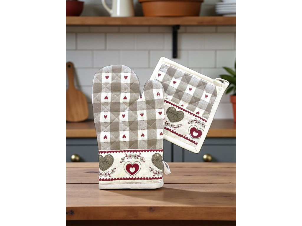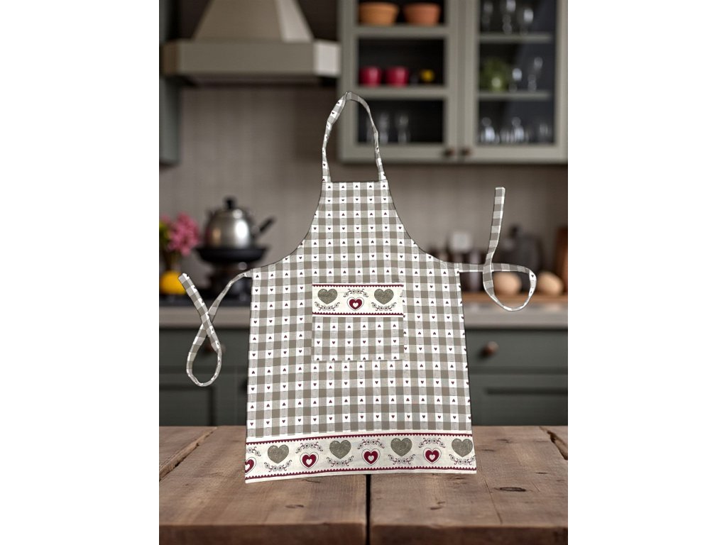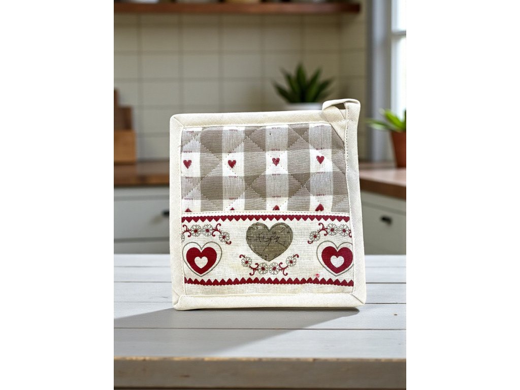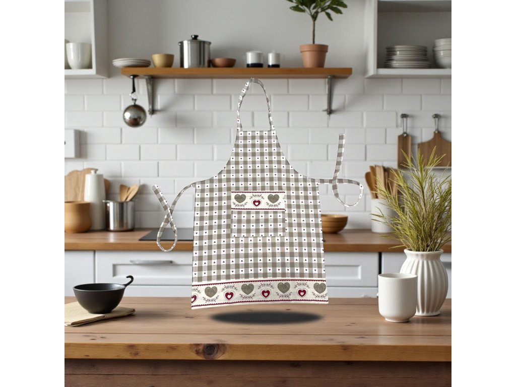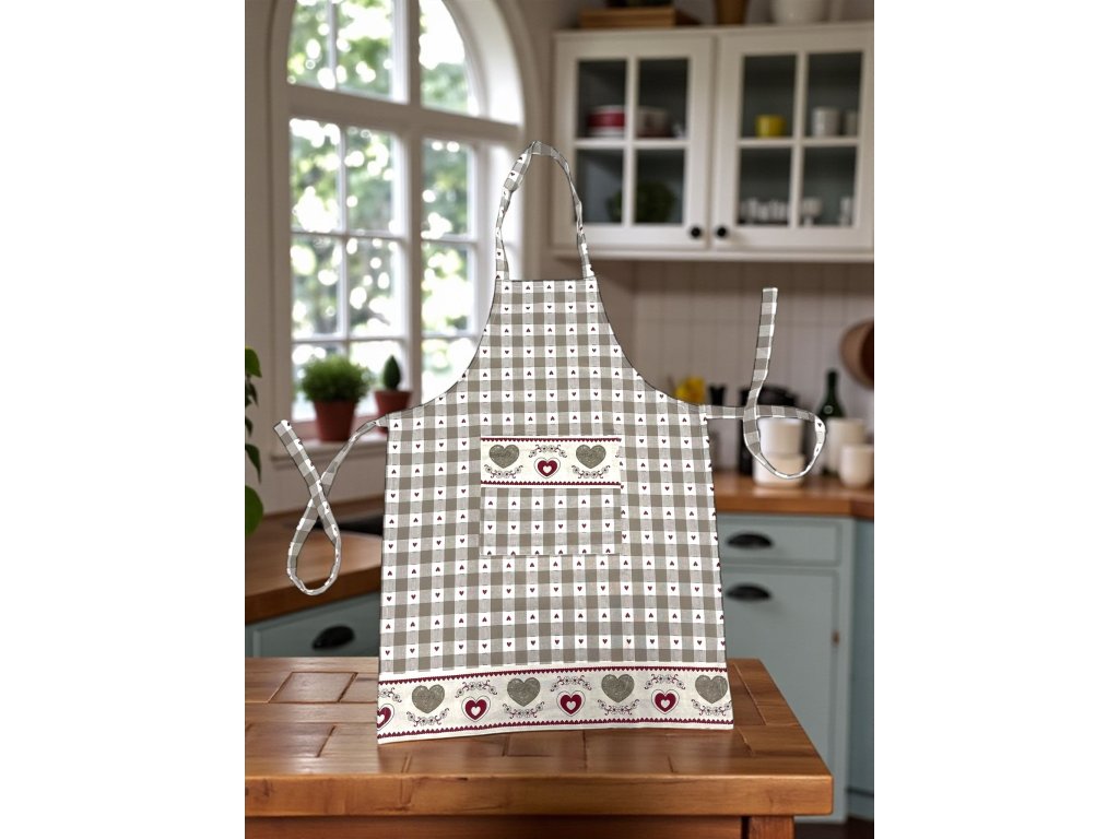 Kombinácia jemnej károvanej vzorky a romantických srdiečok vytvára nadčasový dizajn, ktorý sa hodí do klasických aj moderných kuchýň.