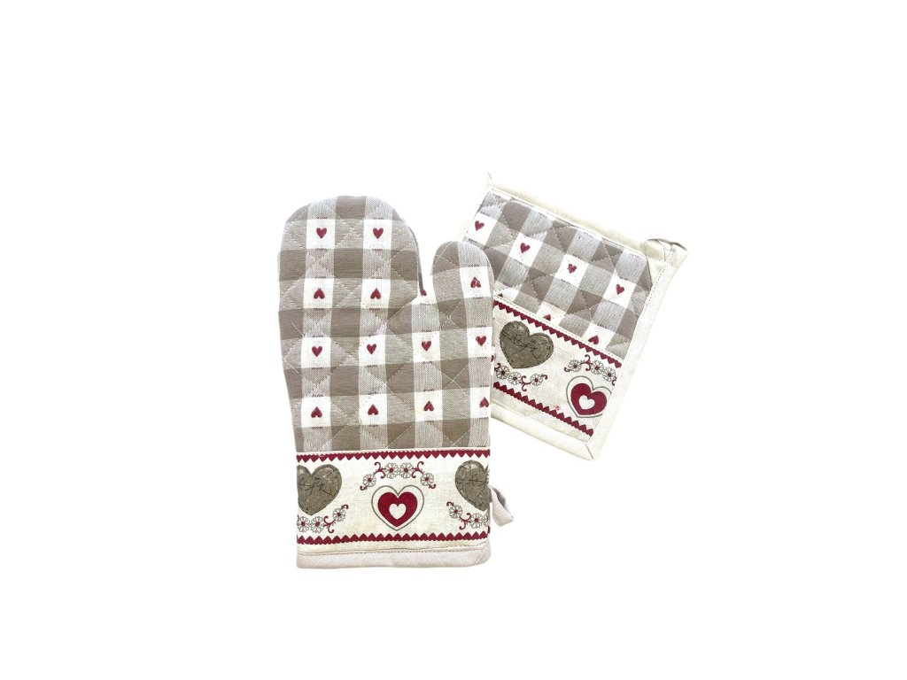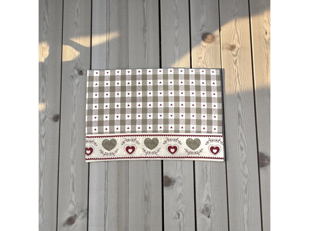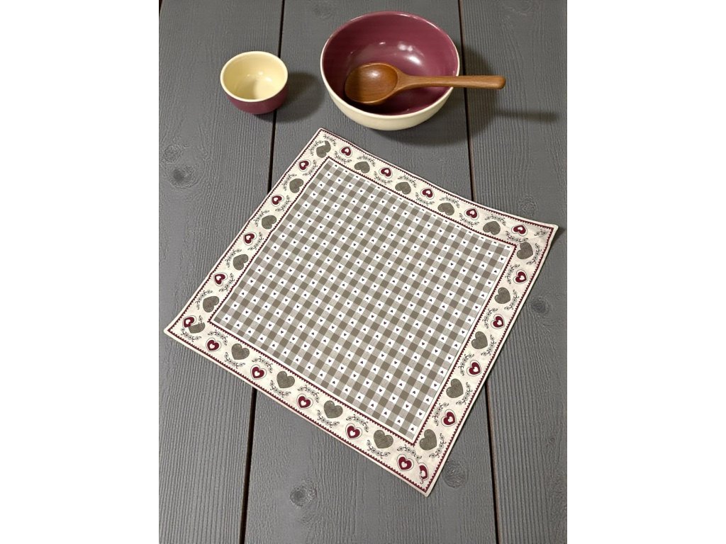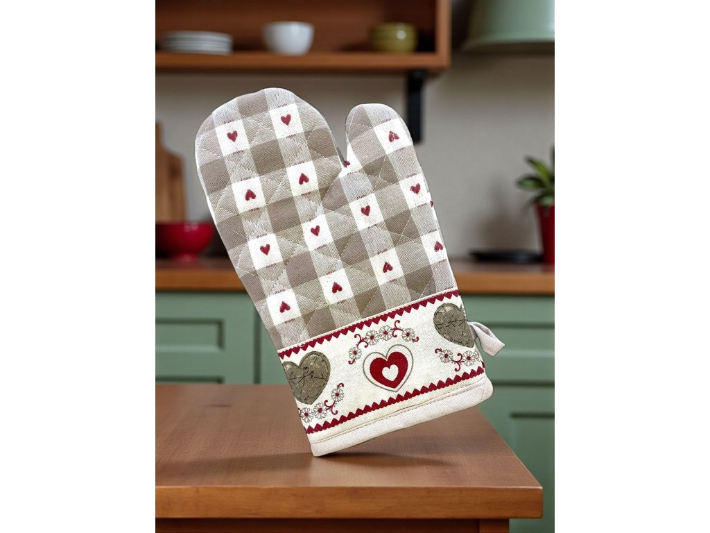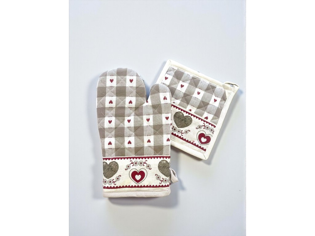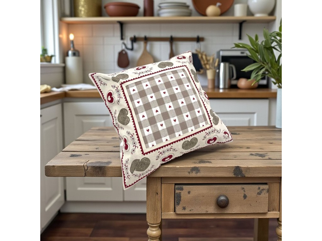 Kombinácia jemnej károvanej vzorky a romantických srdiečok vytvára nadčasový dizajn, ktorý sa hodí do klasických aj moderných kuchýň.