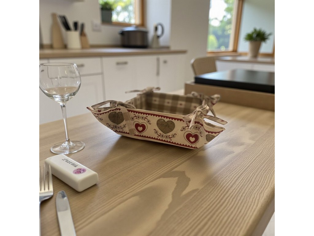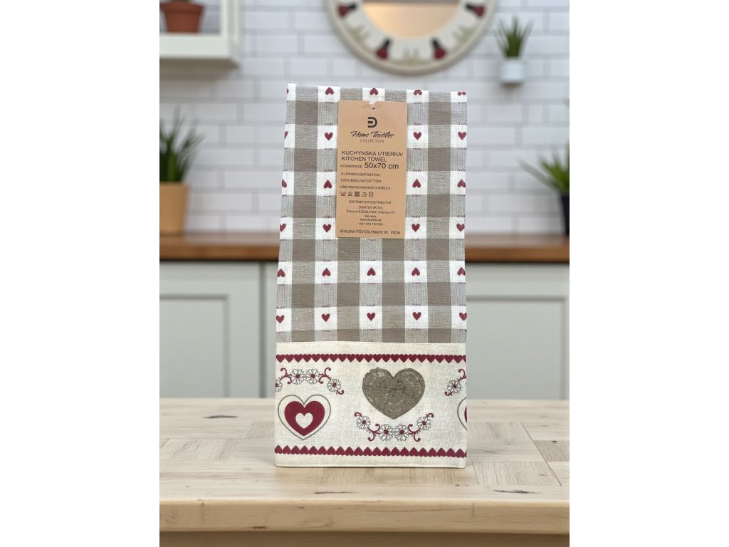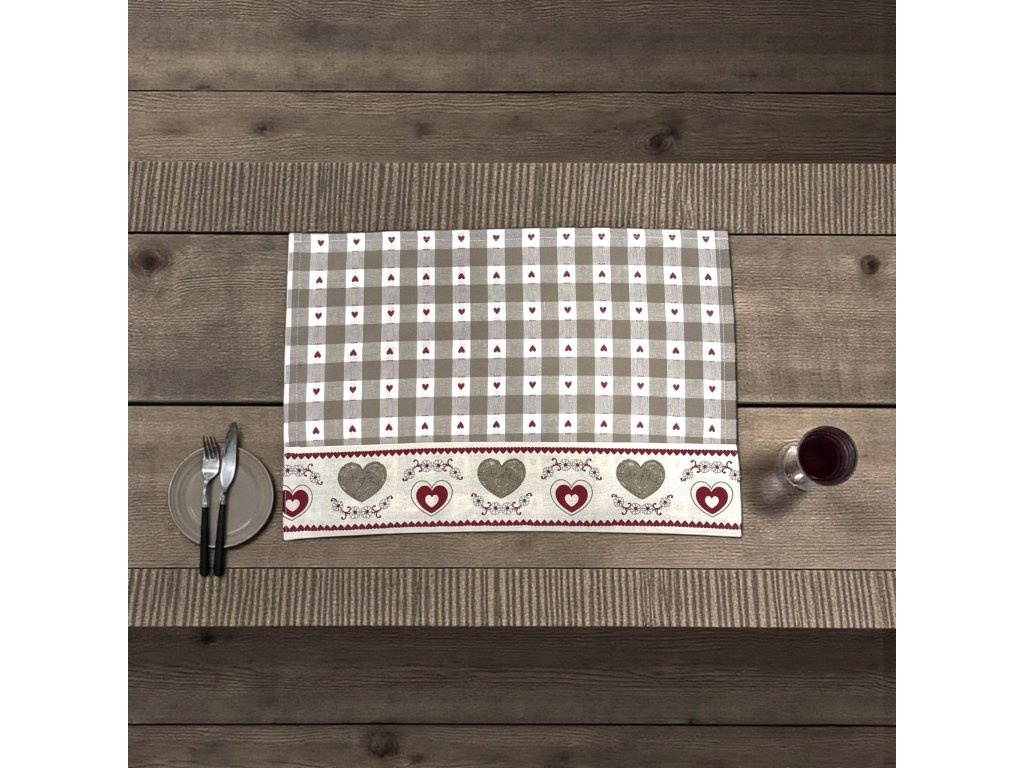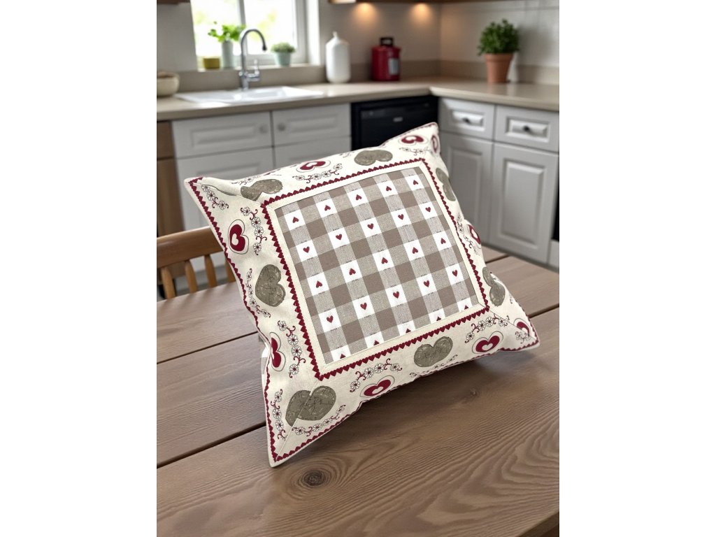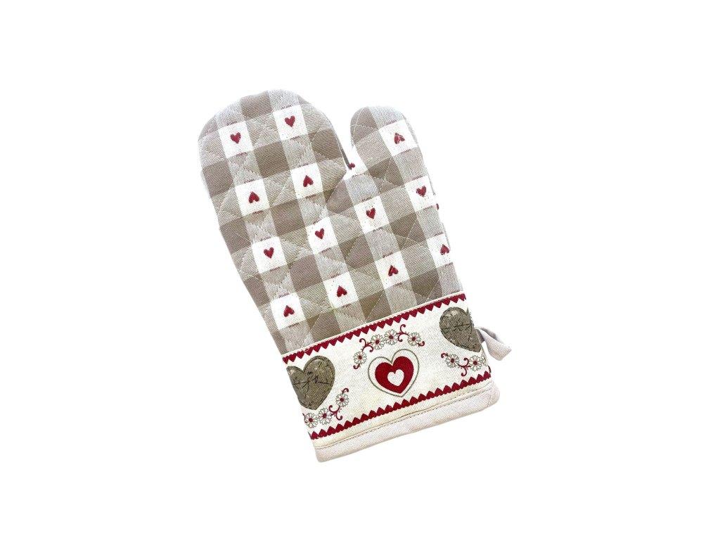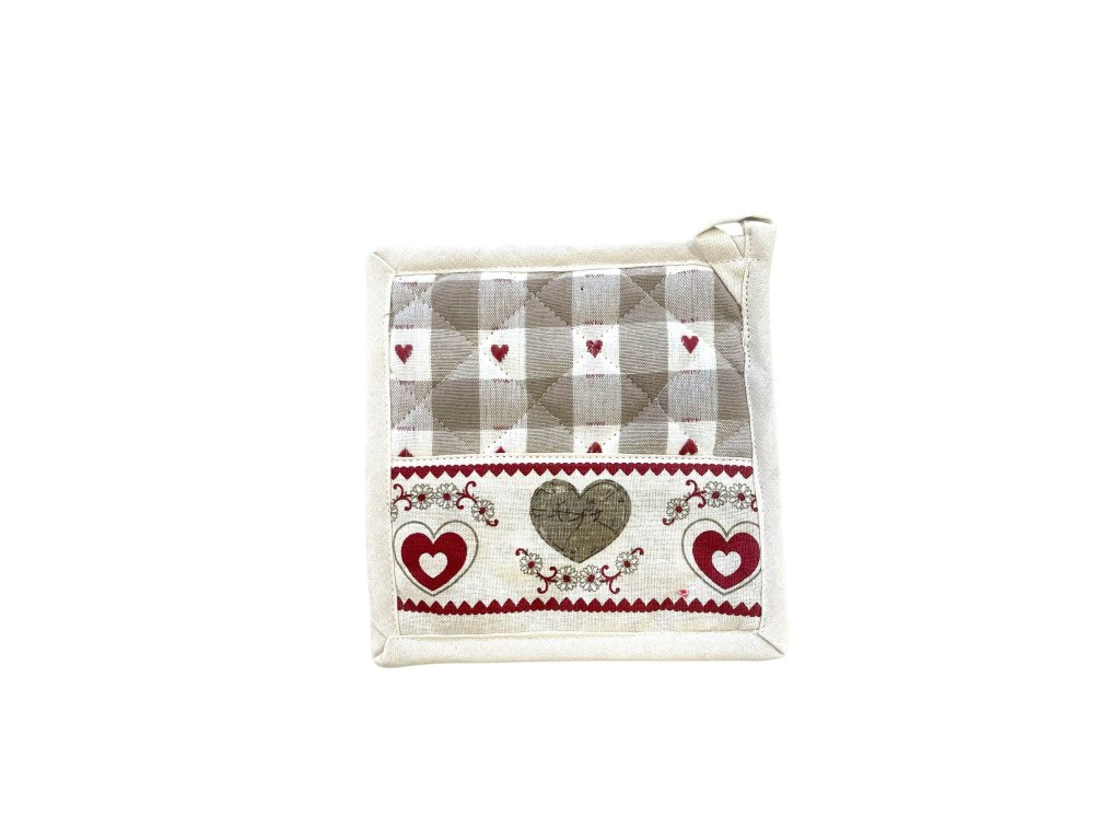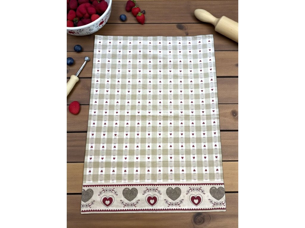 Kombinácia jemnej károvanej vzorky a romantických srdiečok vytvára nadčasový dizajn, ktorý sa hodí do klasických aj moderných kuchýň.