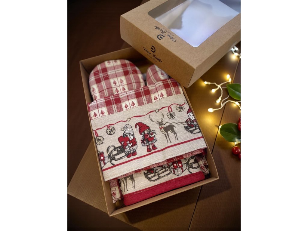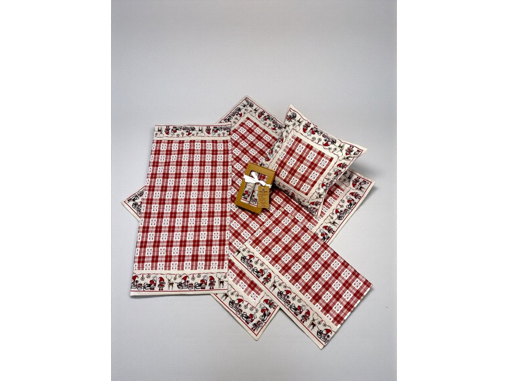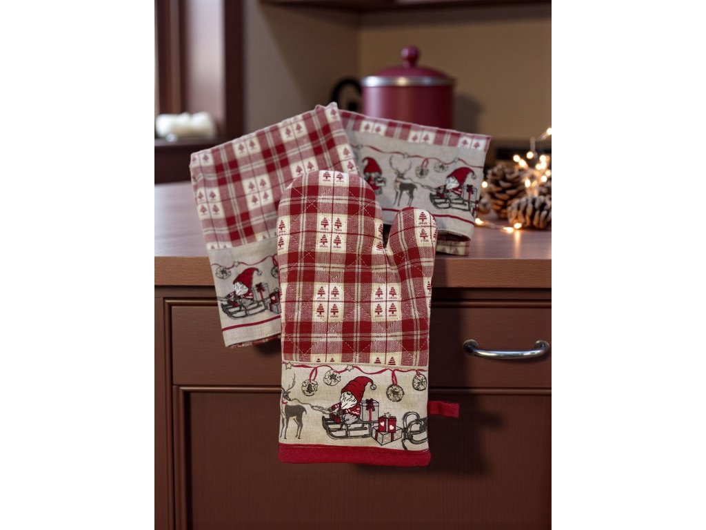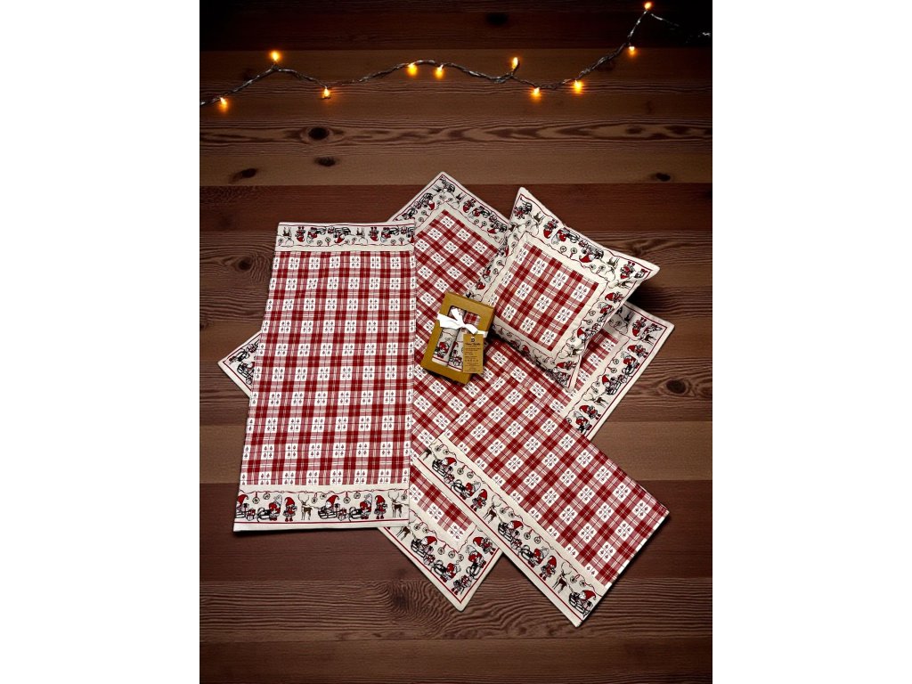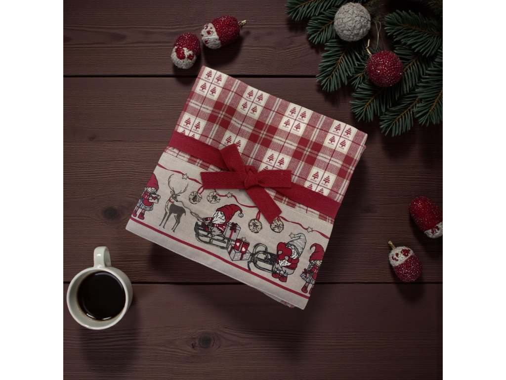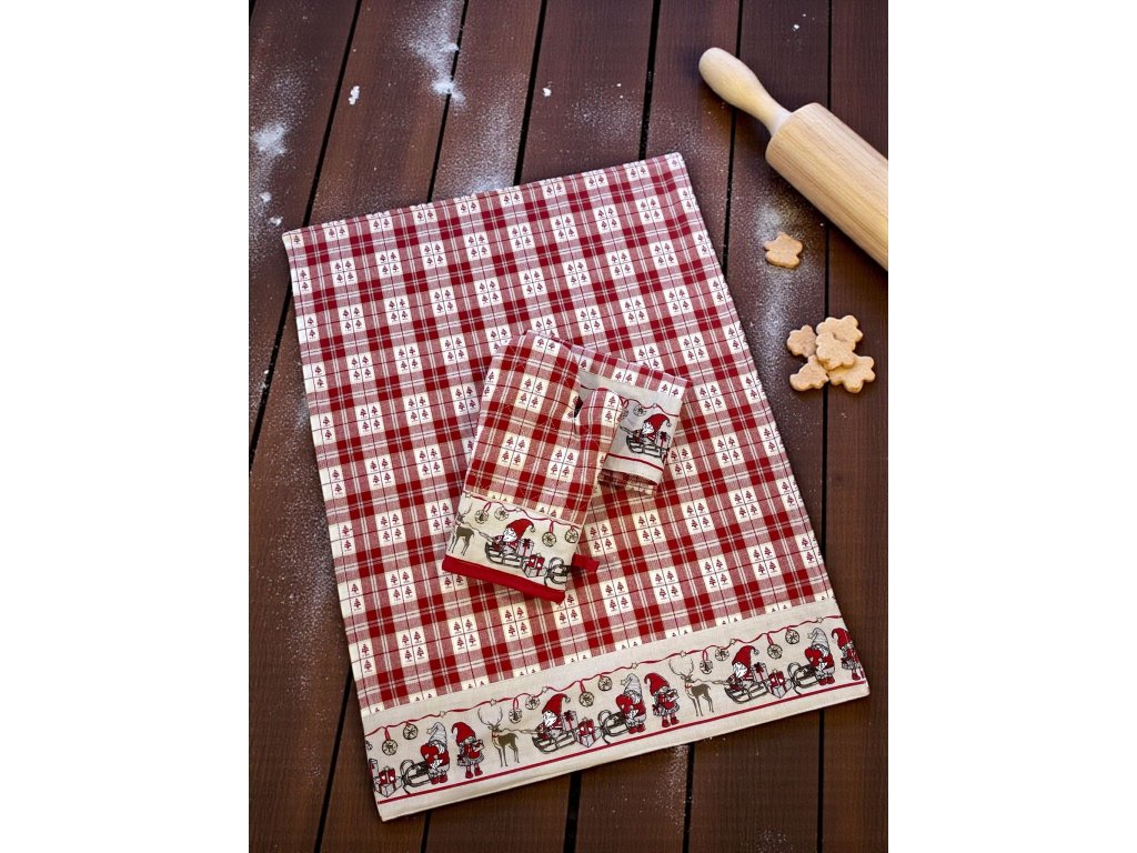 vianočný obrus, vianočný textil, vianočné utierky, vianočná zástera, vianočná výzdoba, vianočná kuchyňa, vianočné doplnky, škriatkovia, vianočná kolekcia, 100 % bavlna, kvalitný vianočný obrus, darčekové sety vianočné, vianočné chňapky, vianočné prestieranie