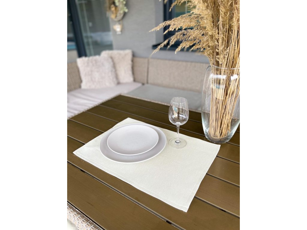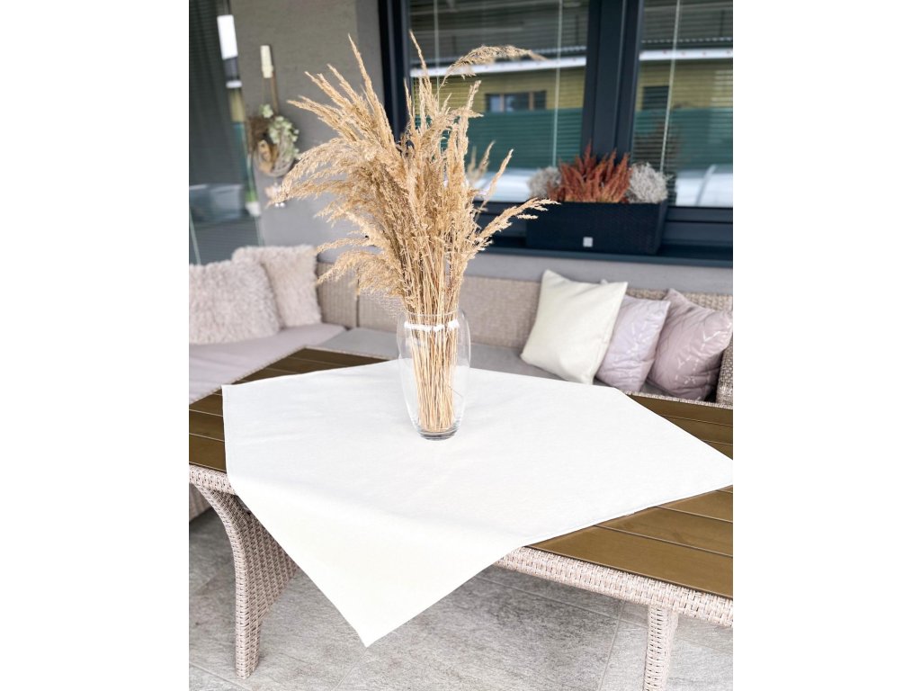 Gobelínové obrusy - Krémový gobelínový obrus pretkaváný striebornou niťou - štvorec obrus 100x100