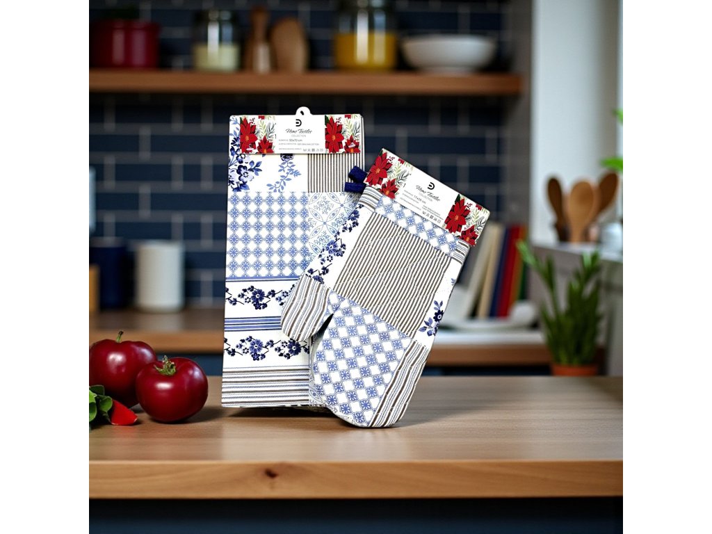 ❤️ Kuchynské teflónové rukavice + bavlnené utierky – celoročný motív