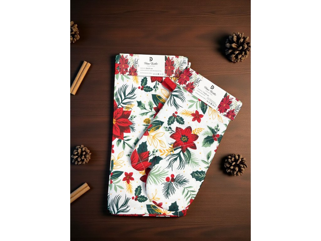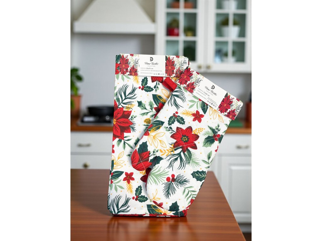 Vianočné kuchynské rukavice a utierky sú vyrobené z prvotriednych materiálov, ktoré spájajú krásny vzhľad s praktickým využitím.