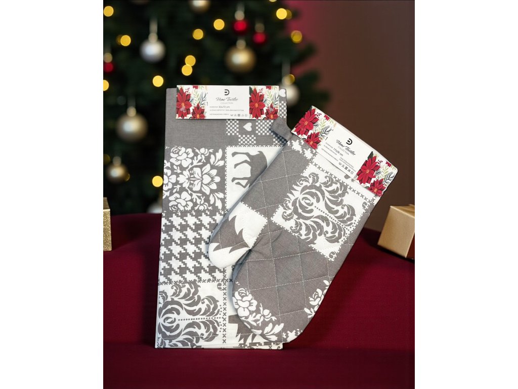 ➡️ Pre dokonalý vzhľad kuchyne môžete zakúpiť rukavice a utierky spolu ako vianočnú sadu.