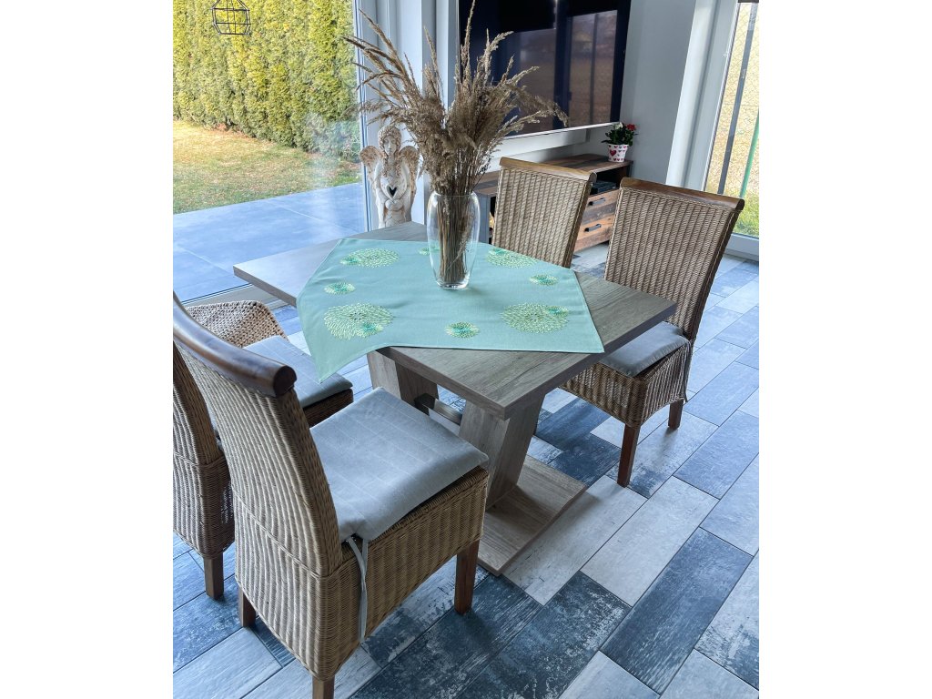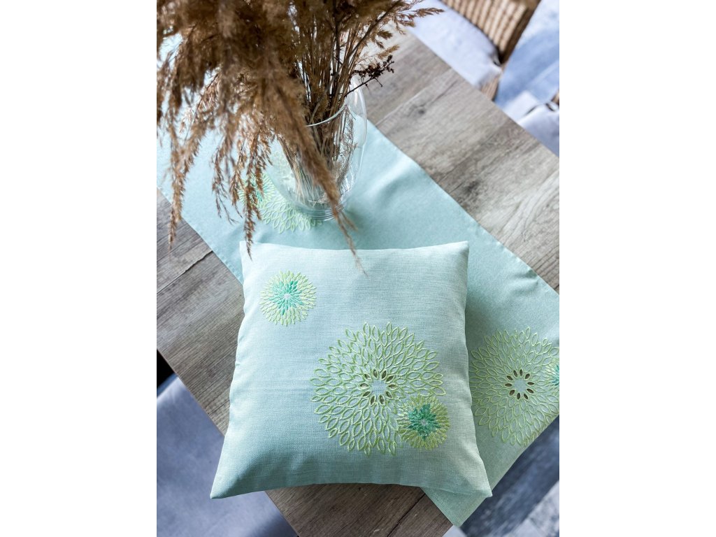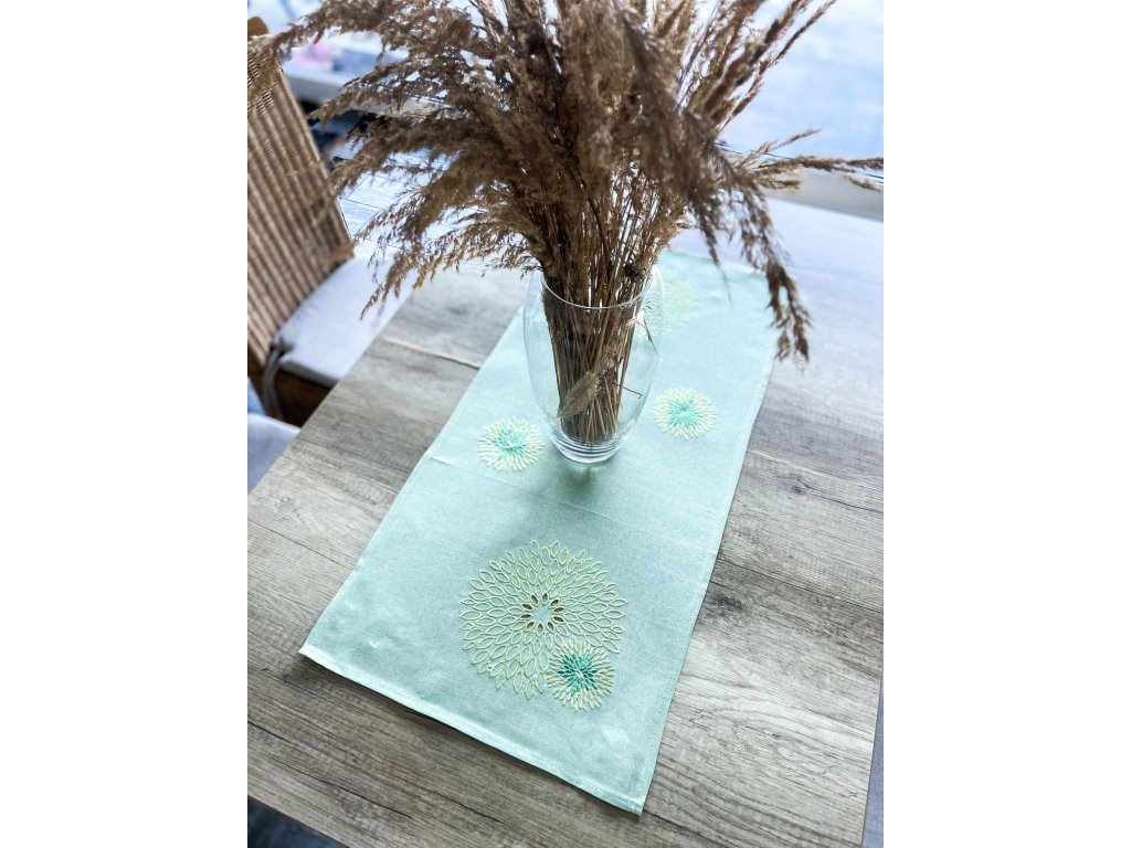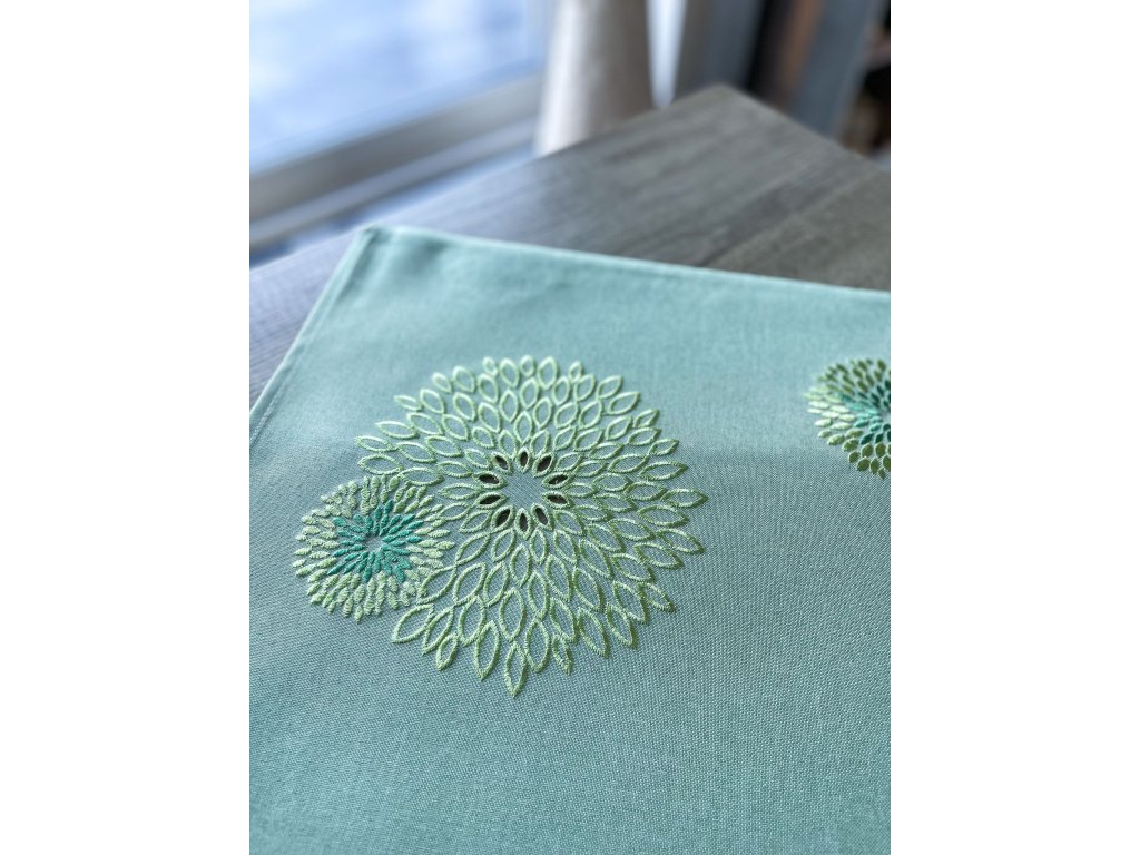 Jemný vzorovaný celoročný vzor, vo svetlo zelenej farbe oživý Váš priestor v kompletnej kolekcií rozmerov. Elegantný obrus s vyrezávaným kvetinovým vzorom je dokonalým doplnkom vášho stola po celý rok. Precízne vyrezávané detaily kvetov prinášajú jemnosť a eleganciu, vďaka čomu je vhodný na každodenné stolovanie aj slávnostné príležitosti. Vyrobený z kvalitného materiálu, ktorý je odolný a ľahko sa udržiava. Skvelá voľba pre tých, ktorí hľadajú štýl a praktickosť v jednom! Vyskladajte si set od vankúšika až po rôzne veľkosti obrusov či prestierania .