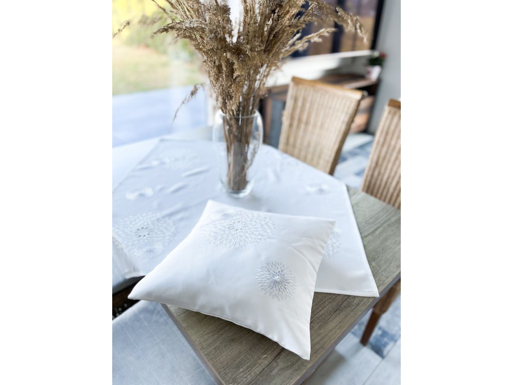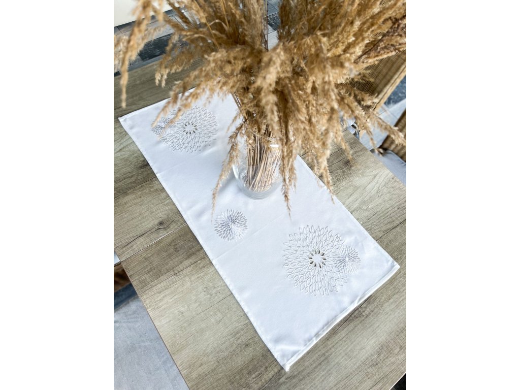Elegantný biely obrus s vyrezávaným kvetinovým vzorom je nadčasovým doplnkom vašeho stola na každé ročné obdobie.