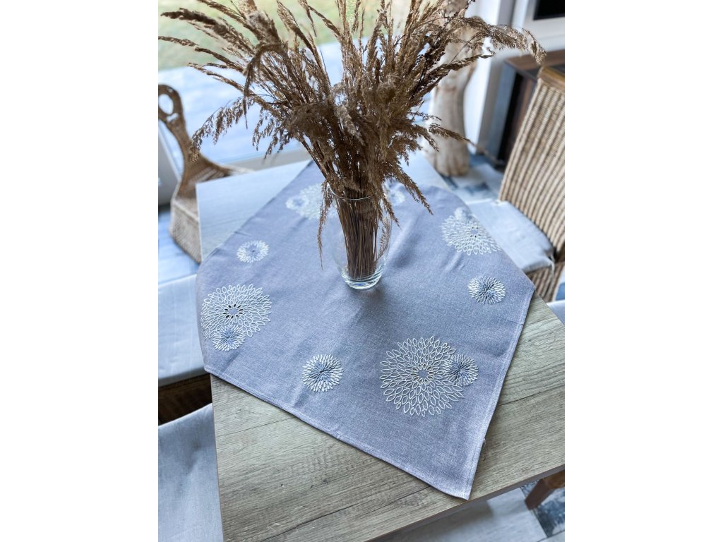 Elegantný sivý obrus s vyrezávaným kvetinovým vzorom je dokonalým doplnkom vášho stola po celý rok. Jeho neutrálny odtieň sa ľahko kombinuje s rôznymi interiérmi a dodáva priestor sofistikovaný vzhľad. Precízne vyrezávané detaily kvetov prinášajú jemnosť a eleganciu, vďaka čomu je vhodný na každodenné stolovanie aj slávnostné príležitosti. Vyrobený z kvalitného materiálu, ktorý je odolný a ľahko sa udržiava. Skvelá voľba pre tých, ktorí hľadajú štýl a praktickosť v jednom! Vyskladajte si set od vankúšika až po rôzne veľkosti obrusov či prestierania .