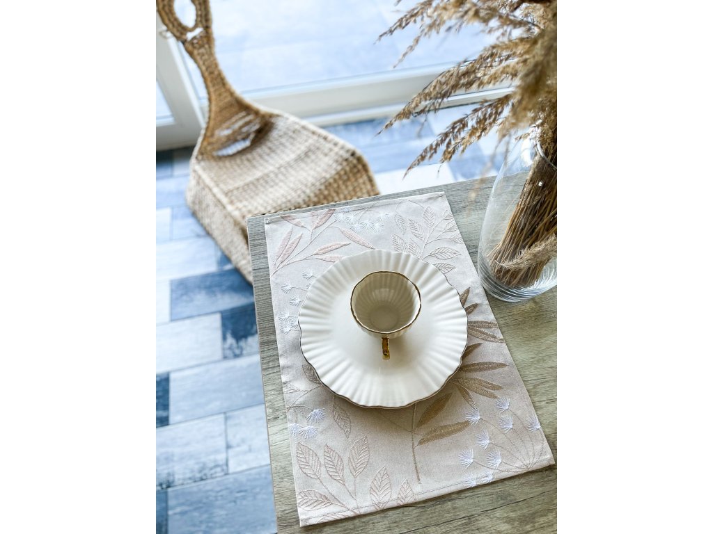 Jeho neutrálny odtieň dodáva priestor teplo a sofistikovaný vzhľad, zatiaľ čo decentný kvetinový vzor prináša jemnosť a eleganciu.
