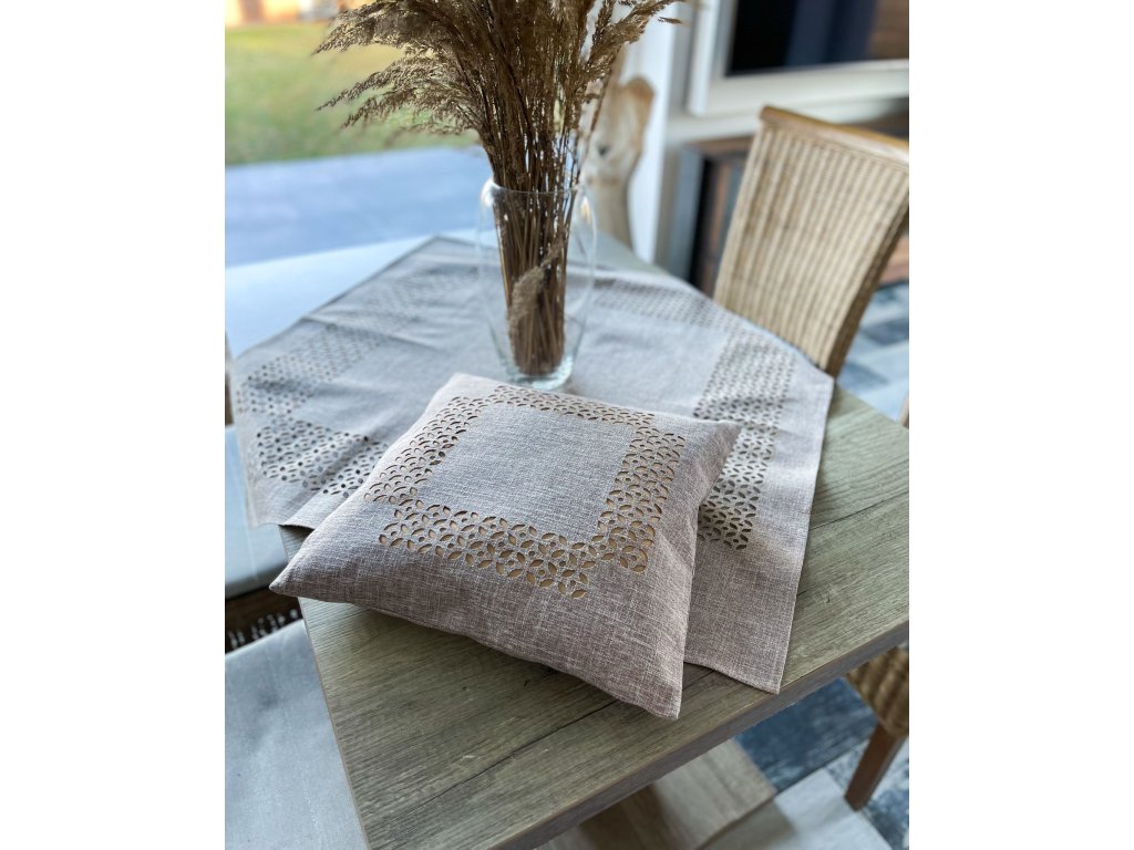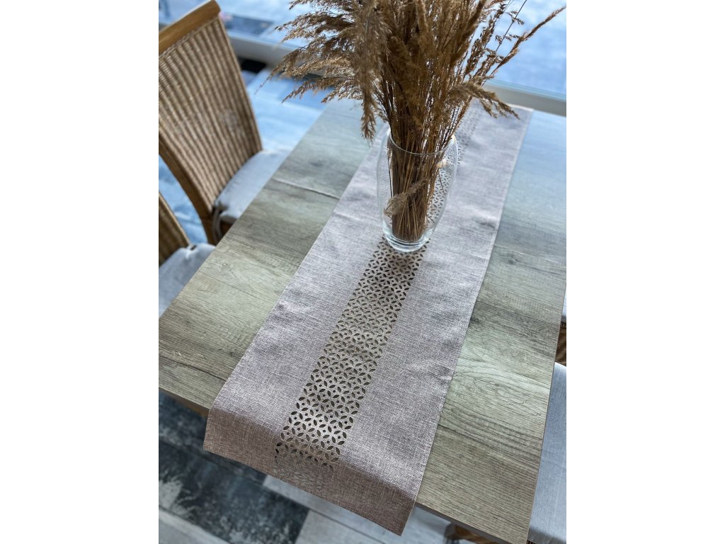 Moderný bledohnedý obrus s výrezom je moderným doplnkom každého stola.