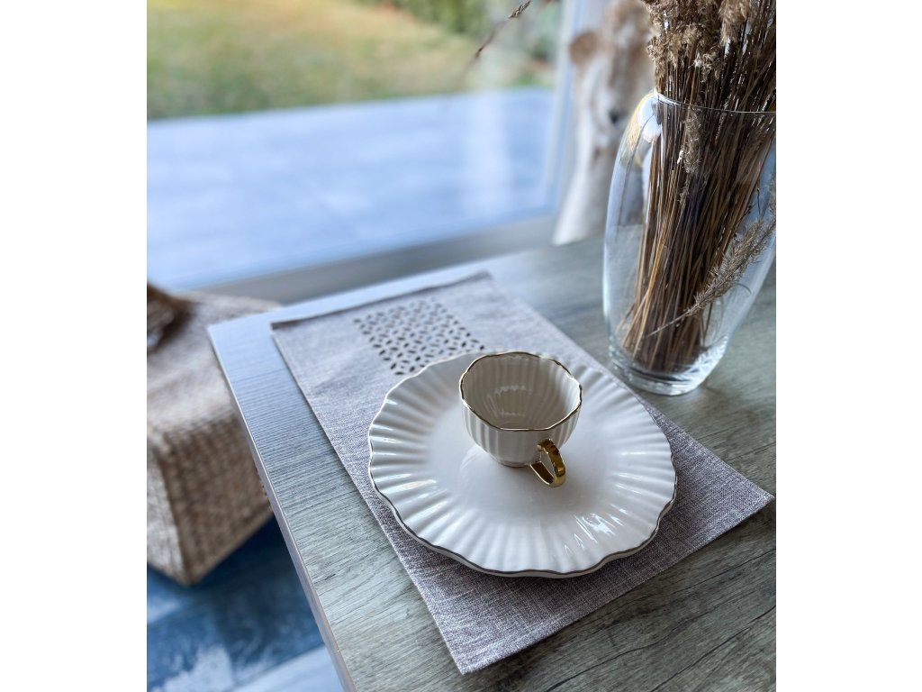 Obrus je vyrobený z kvalitného materiálu, ktorý je odolný voči škvrnám a ľahko sa udržiava. Ideálny na každodenné použitie aj špeciálne príležitosti. Vytvorte si dokonalú atmosféru pri stole s týmto štýlovým kúskom!