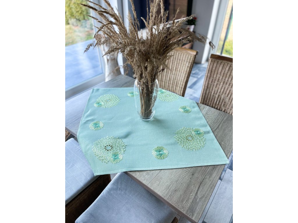 Jemný vzorovaný celoročný vzor, vo svetlo zelenej farbe oživý Váš priestor v kompletnej kolekcií rozmerov. Elegantný obrus s vyrezávaným kvetinovým vzorom je dokonalým doplnkom vášho stola po celý rok. Precízne vyrezávané detaily kvetov prinášajú jemnosť a eleganciu, vďaka čomu je vhodný na každodenné stolovanie aj slávnostné príležitosti. Vyrobený z kvalitného materiálu, ktorý je odolný a ľahko sa udržiava. Skvelá voľba pre tých, ktorí hľadajú štýl a praktickosť v jednom! Vyskladajte si set od vankúšika až po rôzne veľkosti obrusov či prestierania .