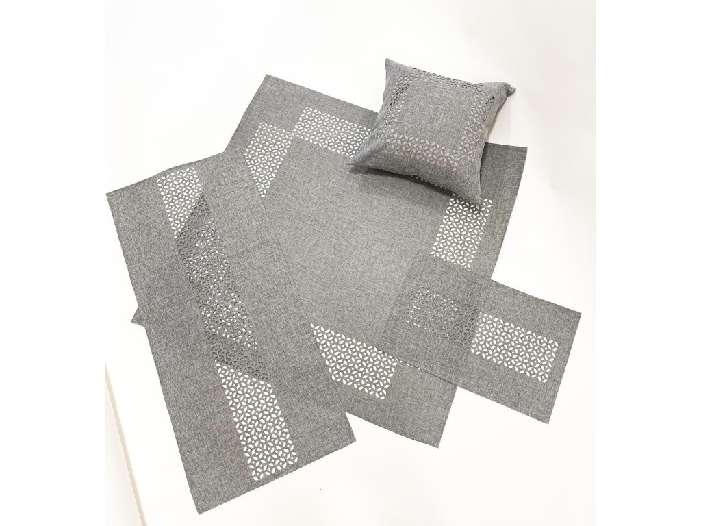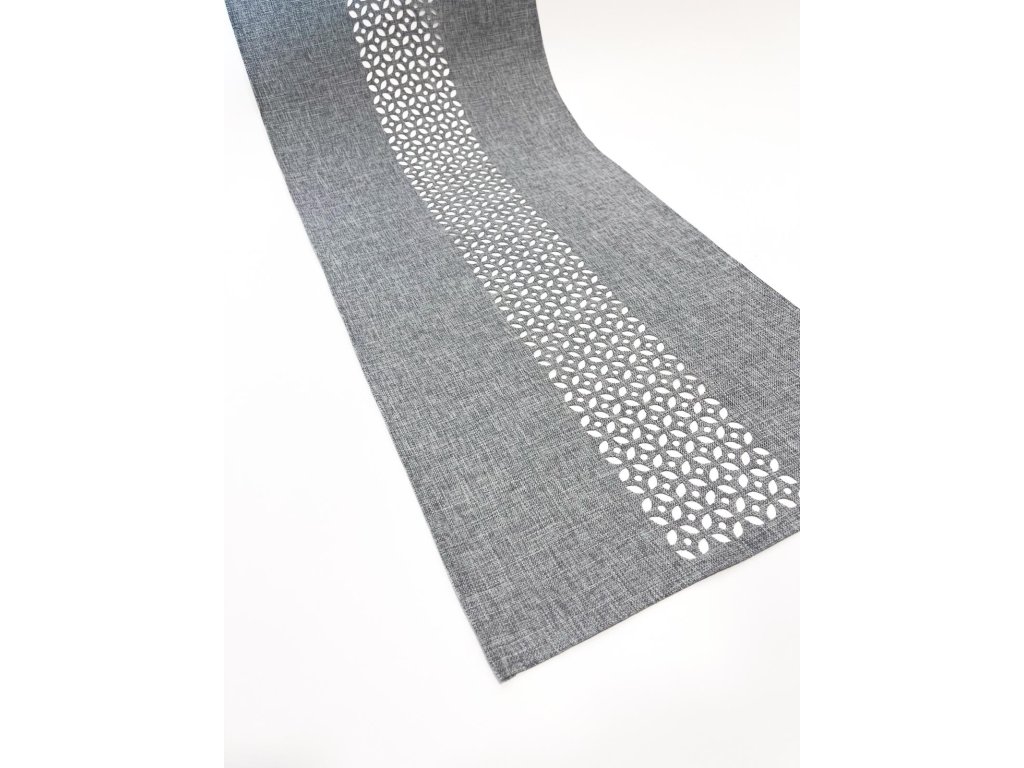 Vyšívaný obrus sivý 09 - 40x90 konferenčný obrus