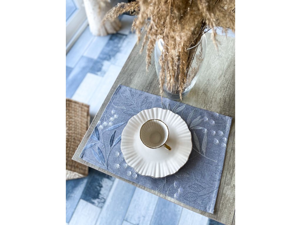 Neutrálna farba dodáva stola moderný a vkusný vzhľad, zatiaľ čo decentný kvetinový vzor prináša jemnosť a eleganciu.