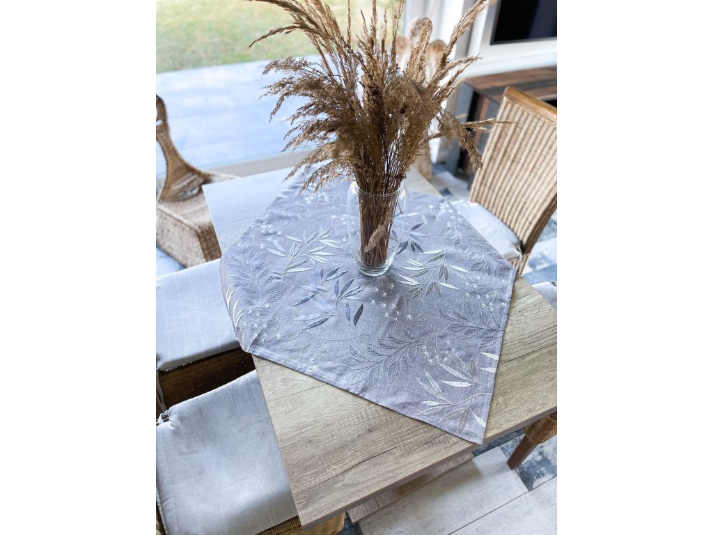 Elegantný sivý celoročný obrus s jemným kvetinovým vzorom je ideálnou úpravou pre každý interiér.
